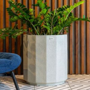 The Hourglass Planter by Palasa has a modern design and beige neutral hue. Crafted by hand this premium FRP indoor and outdoor planter works well in blending indoor and outdoor spaces.